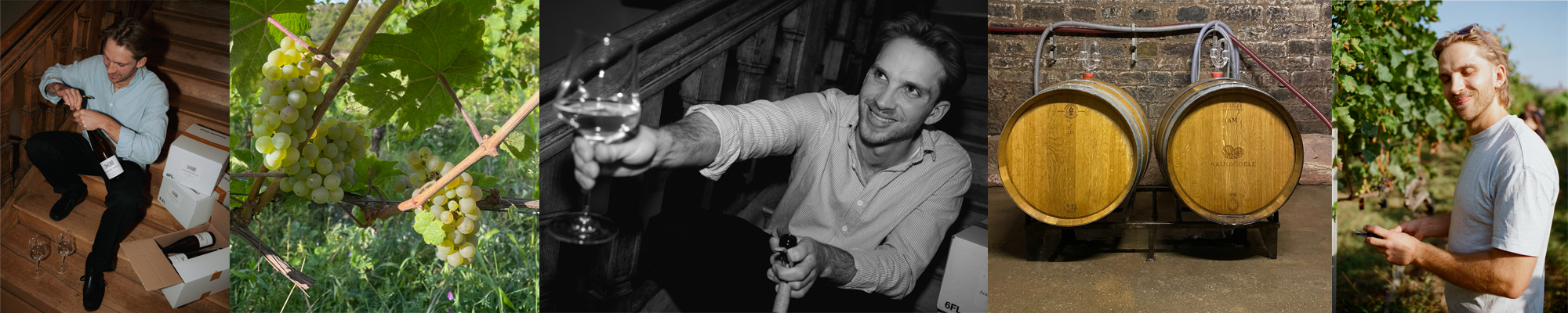 Nach seinem Studium in Geisenheim führte Alex sein Weg zuerst zu Claus Preisinger ins Burgenland und anschließend zum Weingut Ökonomierat Rebholz. Dort prägte er sein handwerkliches Verständnis, bevor er 2. Kellermeister bei Dr. Bürklin-Wolf wurde – eine Station, an der er seit 2021 in der Pfalz zu Hause ist. Seine Familie kommt aus dem Pfälzer Örtchen Gönnheim und ist tief verwurzelt im Weinbau: Sein Urgroßvater betrieb einen Gemischtbetrieb, sein Vater baute Trauben für die Genossenschaft und für einen bekannten Betrieb im Ort an.